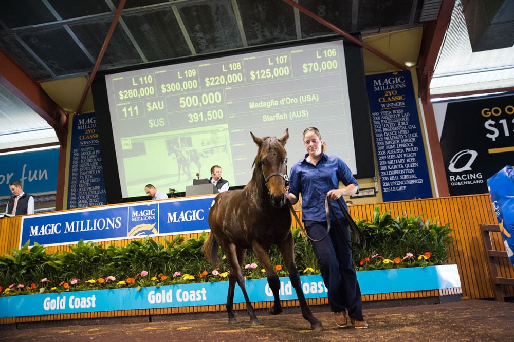 Read MoreA stunning colt by Golden Slipper producing sire Medaglia d’Oro topped the opening day of the Magic Millions National Weanling …
