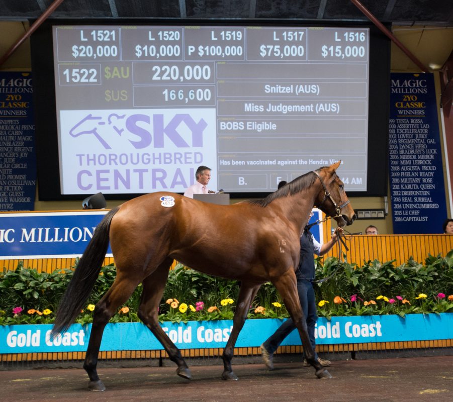 An impeccably bred daughter of leading sire Snitzel topped Tuesday’s Day One of the Magic Millions National Yearling. The filly, …