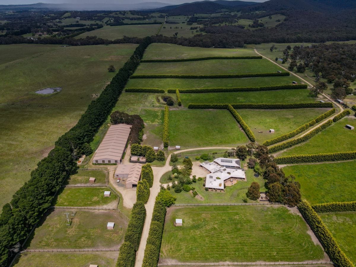 Just 35km from Melbourne’s International Airport and under an hour’s drive from the CBD, the farm is ideally located in the beautiful Macedon Ranges, one of Victoria’s highest performing growth corridors. City skyline views from the Southern portion of land creates opportunity for a training track or new home site as part of future potential subdivision of the offered parcel (STCA).