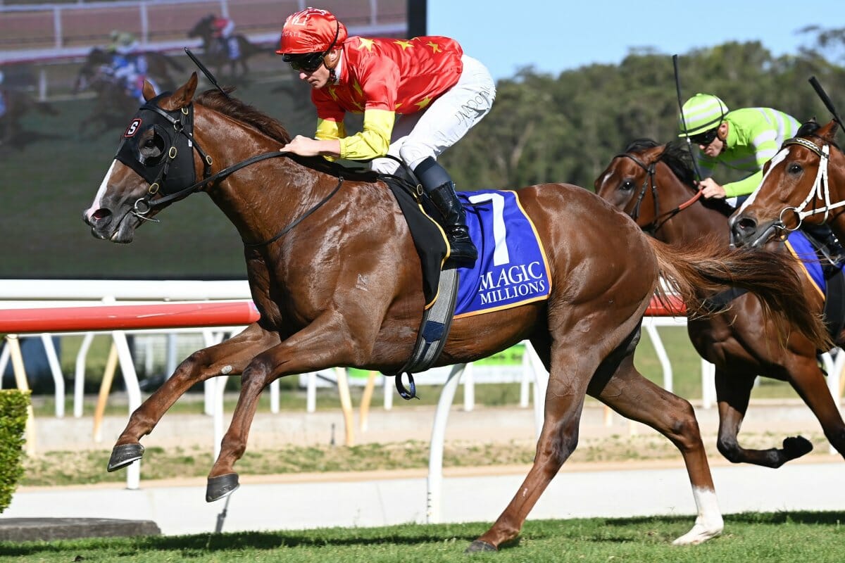 | Sent out a firming $6 chance after an encouraging trial behind recent winner The Novelist, Sovereign Fund was able to track the leaders before sweeping to the front in the straight and winning stylishly. At the post the good looking chestnut juvenile held a length and a quarter margin over the Dubbo trained Quasimoto ($51), while Golden Gift placegetter Summer Loving ($4) was a half head back in third place after being slow at the jump. A member of the Peter and Paul Snowden stable, Sovereign Fund couldn’t have done more on debut and now connections are dreaming of him being able to emulate his sire with a Magic Millions double on January 14. “He’s done a good job,” co-trainer Paul Snowden said. “He’s come a long way in a short space of time.” “Early on he was very shy and didn’t like getting cluttered up between runners. It was quite evident in that first trial.” “We’ve done a lot of work on him and tinkered with his gear. Racing is the key to work it out of him in time. Once he got into that air today he was really strong to the line.” Snowden said Sovereign Fund would now head north to contest the $2 million The Star Gold Coast Magic Millions 2YO Classic (1200m, RL) on January 14. “It’s always been the main form race when going north. He’s a pretty tough horse this bloke and he’s got a fair bit of constitution about him. He’s pretty tough and strong – he’ll get up there in good order.” James McDonald, recently crowned the World’s Best Jockey in Hong Kong, was suitably impressed with the performance of Sovereign Fund. “It was a good tradesman’s type performance,” McDonald said. “He put himself into a good spot and travelled strongly.” “He’s a ready made two-year-old, big and strong – he’ll cope with the preparation that’s going to be involved to get him to a Magic Millions (2YO Classic).” “He will improve a lot,” McDonald added. “He’s got tactical speed and he’s very tough – he’s a nice horse.” Sovereign Fund, a son of 2015 Magic Millions Wyong 2YO Classic and Gold Coast 2YO Classic winner Capitalist, was a $550,000 buy for China Horse Club in partnership with Newgate Bloodstock and Trilogy Racing. He is a half brother to multiple winner Oblivion and is from the group performed, $290,000 earnings Mossman mare Mossbeat. Meanwhile, trainer John O’Shea looks to have a nice pair of challengers for the $2 million Gold Coast Magic Millions 3YO Guineas (1400m) after Hell I Am and Shalailed dominated today’s Magic Millions Wyong 3YO & 4YO Stakes (1200m). With man of the moment James McDonald in the saddle, Hell I Am was able to lengthen beautifully in the straight when called upon and at the post he held a widening length and half margin. It was the third straight win for Hell I Am, but first from a short break, after wins at Canterbury and Randwick in August and September respectively. A son of Hellbent, Hell I Am was a $150,000 purchase for Champion Thoroughbreds at the 2021 Gold Coast Yearling Sale from the draft of Edinglassie Thoroughbreds. The win provided a timely pedigree boost for the team from Edinglassie who will present a Magna Grecia half sister at next month’s 2023 Gold Coast Yearling Sale as Lot 879. The Magic Millions Race Series action now heads north with $12.7 million in prizemoney and bonuses across both January 7 and 14 race meetings at the Gold Coast. |