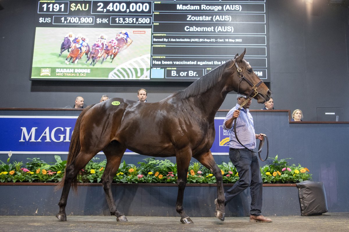 | Madam Rouge proved the star of a remarkable third and final day of the 2022 Magic Millions National Broodmare Sale on the Gold Coast today. |