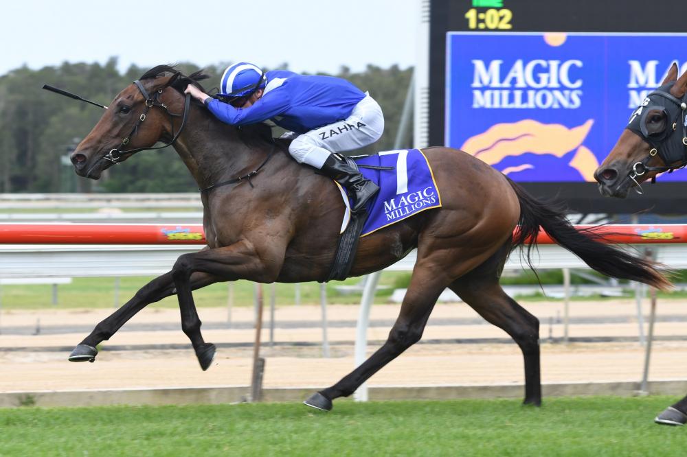 Meanwhile, hot favourite Egyptian Symbol confirmed her place in next month’s $1 million Magic Millions Fillies & Mares feature with a strong win in the $100,000 Wyong Magic Millions 3 & 4YO Trophy.