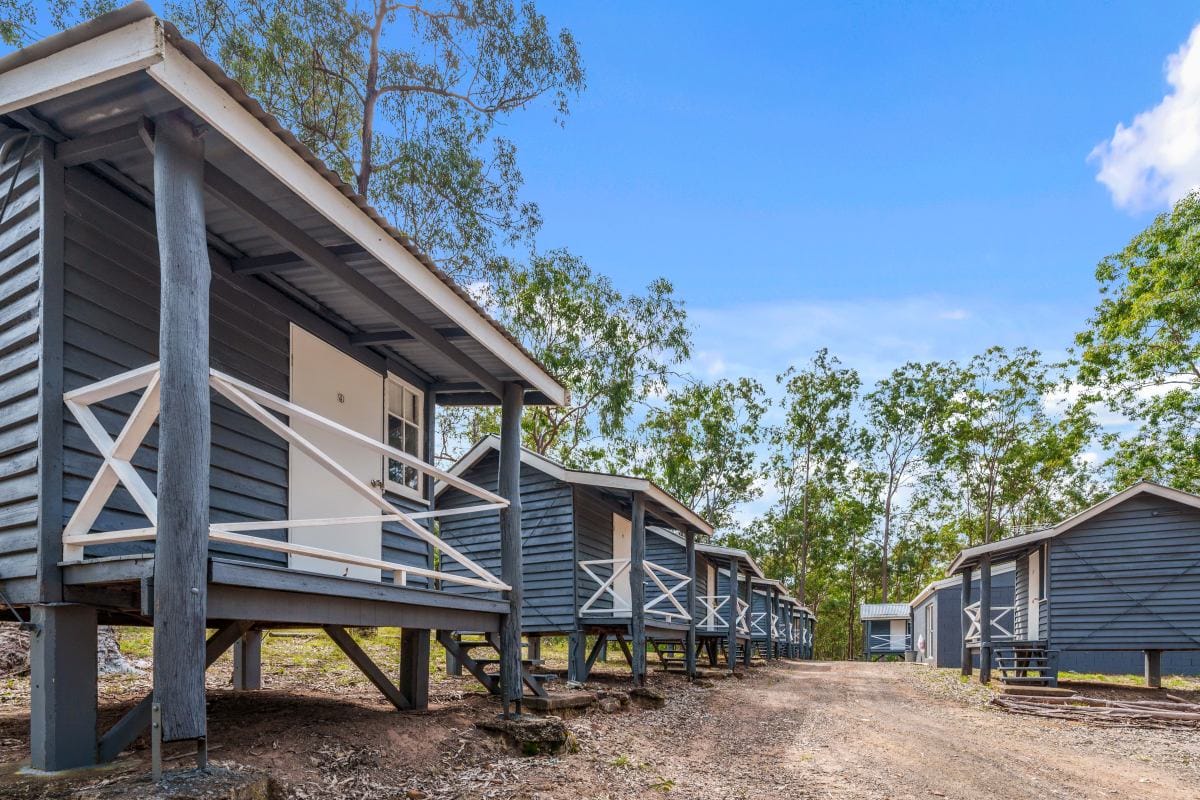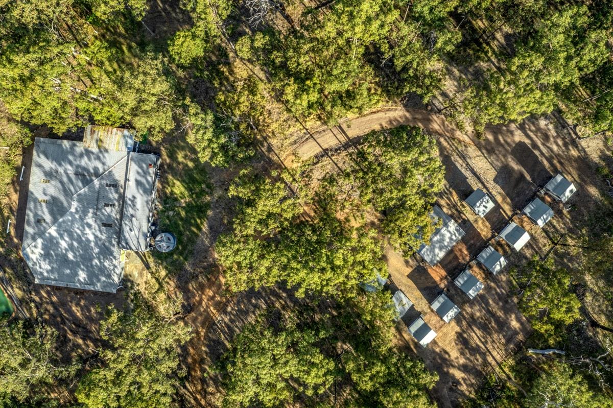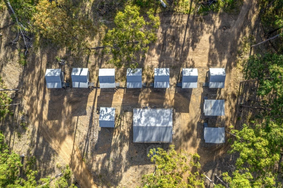 10 x Individual powered Cabins + Common Room with full amenities (Sleeps 20)